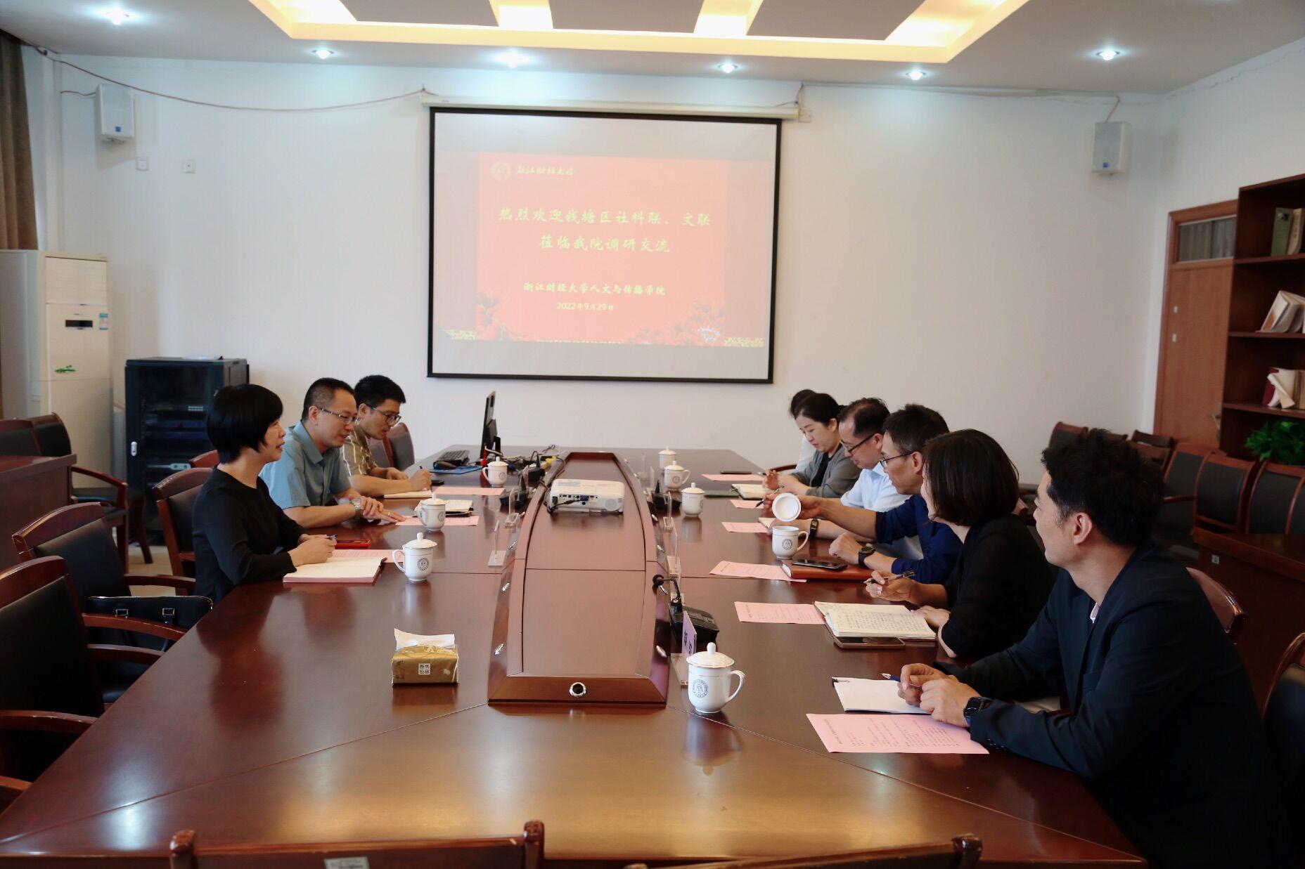 9月29日上午,杭州市钱塘区社科联主席贺学兵、文联副主席沈小玲等一行3人来漫画人 交流调研。校党委委员、组织部、宣传部、统战部部长楼胆群、宣传部副部长毛鸽,学院院长周保欣、学院党委书记高燕及学院骨干教师参加了调研交流活动。会上,楼部部长代表学校对钱塘区社...