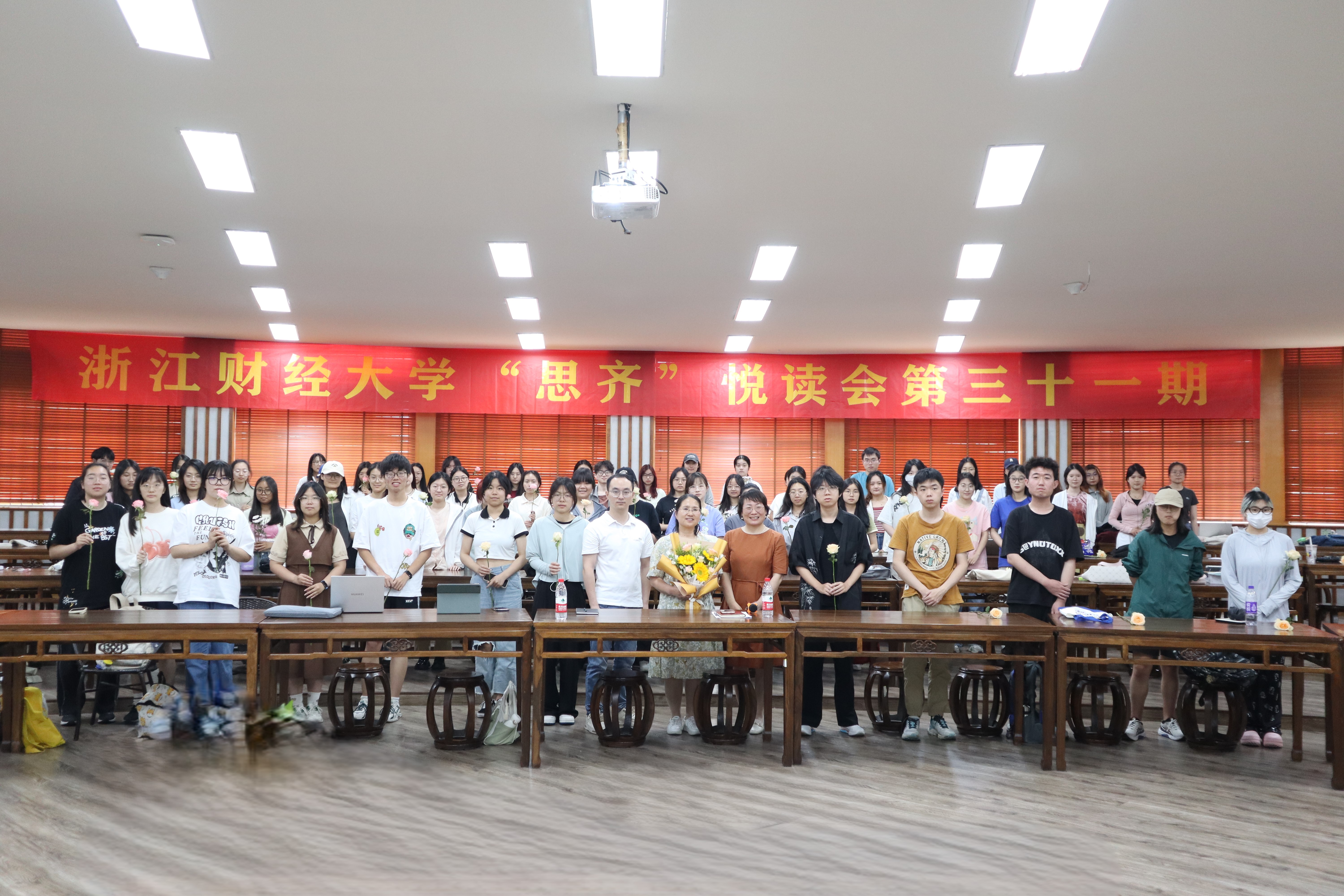 阳光和暖,浅夏如期,5月21日下午,浙江财经大学人文学院第三十一期“思齐”悦读会在人文学院楼问津书院隆重举行。此次读书会由赵春珍副教授主讲,党委副书记袁慧兰主持,辅导员刘财国以及来自全校八十多位同学参加。读书会开始前,袁慧兰老师先做了一个引入,她说:...