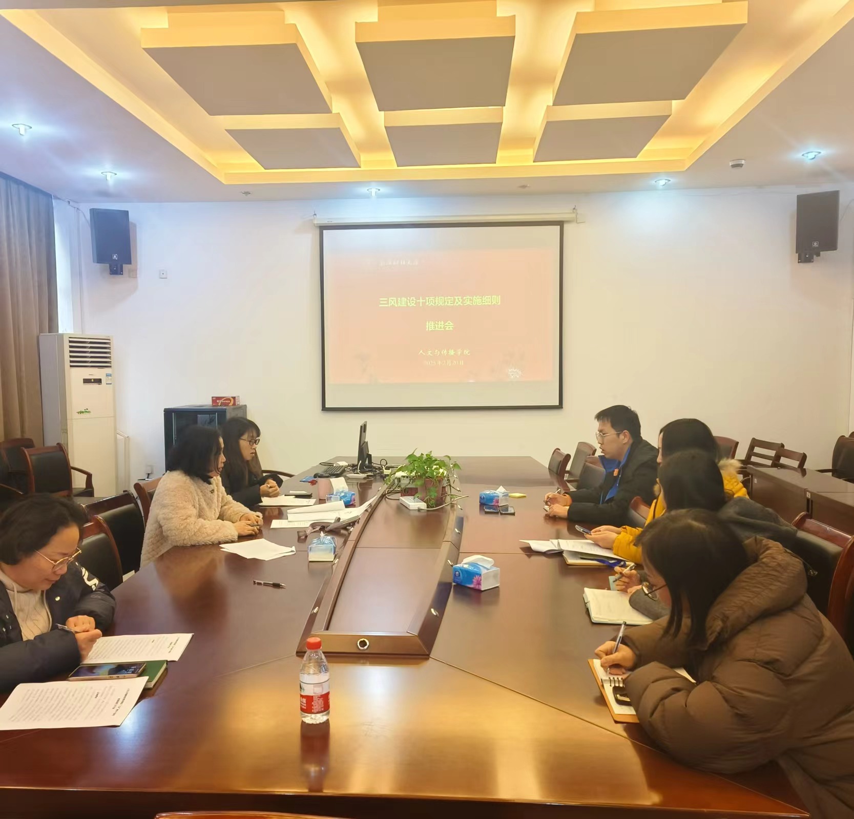 2月21日下午,学院召开落实“三风”建设十项规定及实施细则推进会。学院“三风”建设工作专班组组长、副组长、各系系主任、相关行政人员等参加会议。会议由院党委书记罗金艳主持。与会人员紧密围绕立德树人根本任务,就如何落实“三风”建设十项规定及实施细则,如何...
