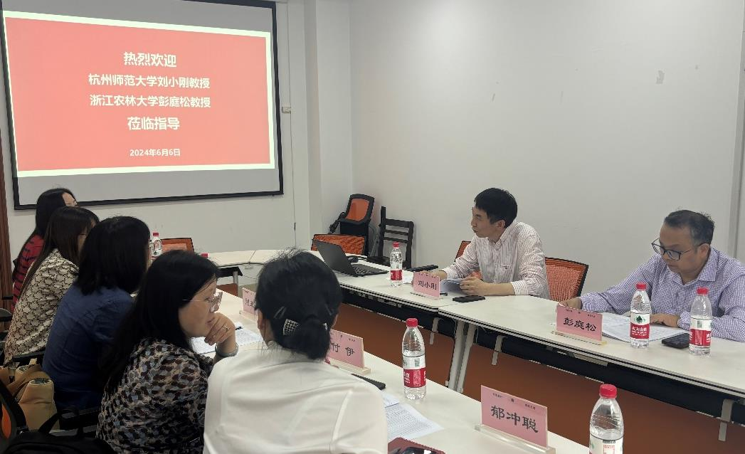 副院长林香娥主持,特邀杭州师范大学人文学院党委委员、中文系主任刘小刚,浙江农林大学原集贤学院、文法学院副院长彭庭松莅临指导,中文系各方向课程教师代表荆亚平、汤燕君、付伊、郁冲聪等参与本次会议。