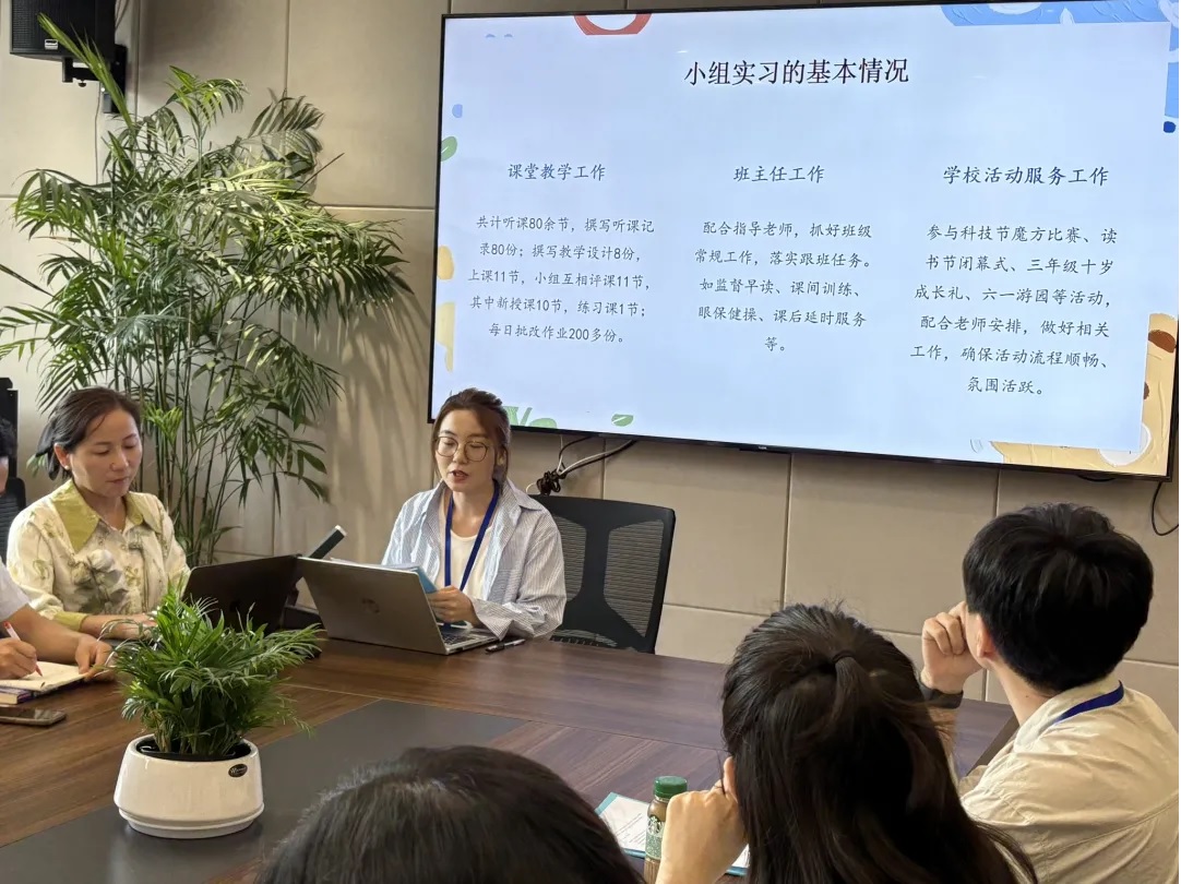 分享会伊始,首先由实习生代表分享本次实习历程。“第一次站在讲台,面对40多双眼睛,紧张到声音发抖。”实习生组长于影分享实习期间的收获与感受。