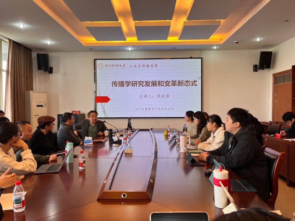 2025年11月27日下午,国际中华传播学会前会长、美国纽约州立大学传播系博士生导师洪浚浩教授应邀访问漫画人 ,围绕“传播学研究发展与变革新态势”作专题学术报告。讲座由新闻与传播学科带头人喻发胜教授主持。学院师生四十余人汇聚会场,共同聆听这场兼具理论深度与现实关怀的学术盛宴。