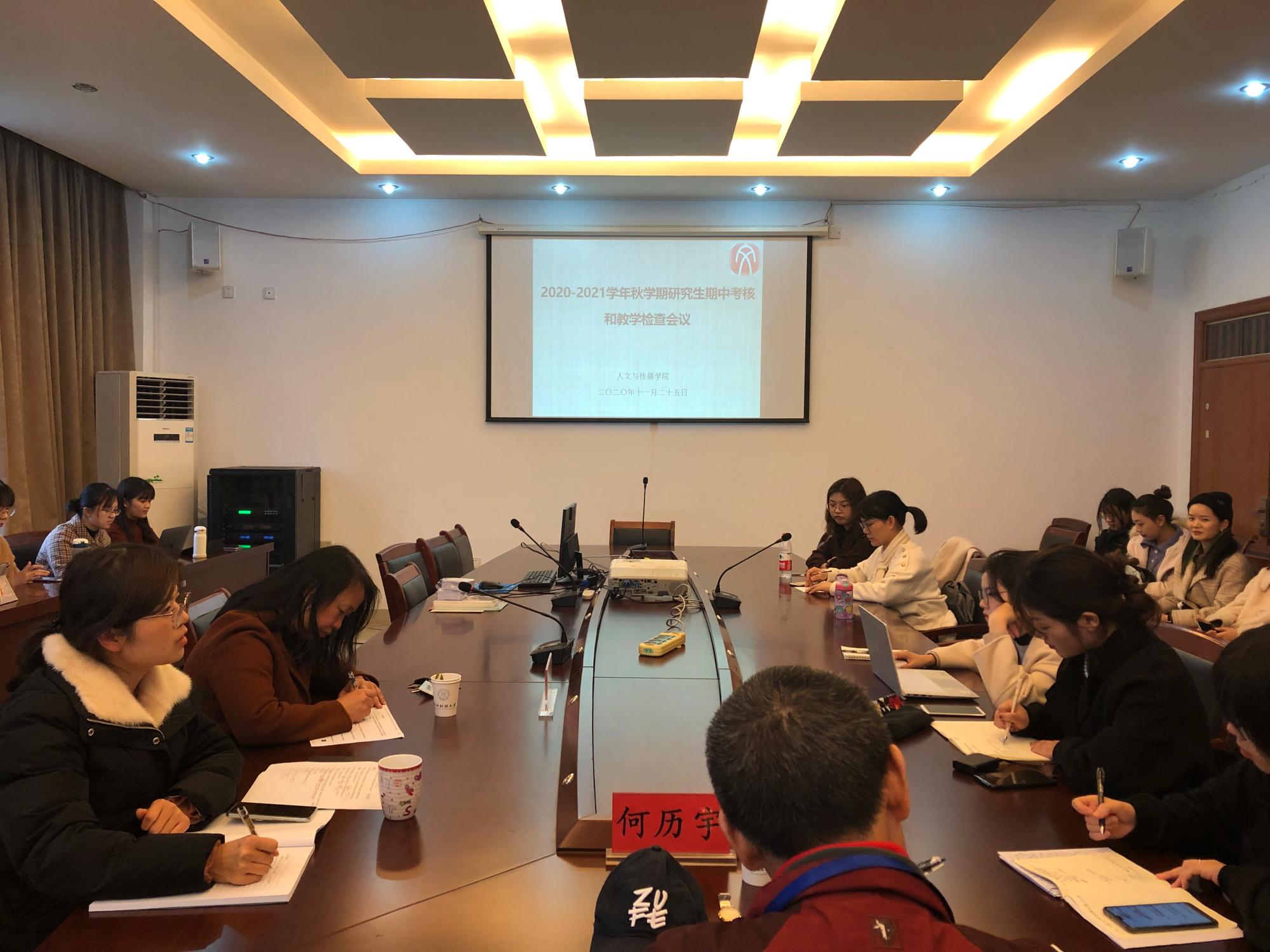 为全面了解研究生课程教学及研究生培养情况,11月25日下午漫画人 于7-404召开2020-2021学年秋学期研究生期中考核和教学检查座谈会。院长助理吴智斌老师主持会议,学校 督导组成员何历宇老师、研究生秘书刘华婷老师、2020级全体研究生参加了座谈会。