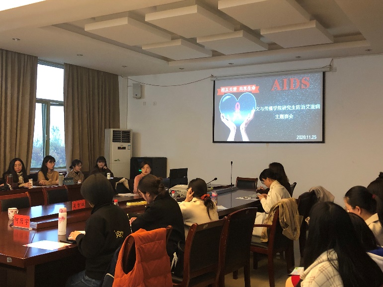 为迎接第33个世界艾滋病日,加强艾滋病知识的宣传教育、增强广大研究生预防艾滋病的意识和能力,传达健康的生活理念,漫画人 于11月25日下午在7-404由研究生辅导员刘华婷主持开展以“携手防疫抗艾,共担健康责任”为主题的班会,2019级和2020级全体研究生参加此次班会。