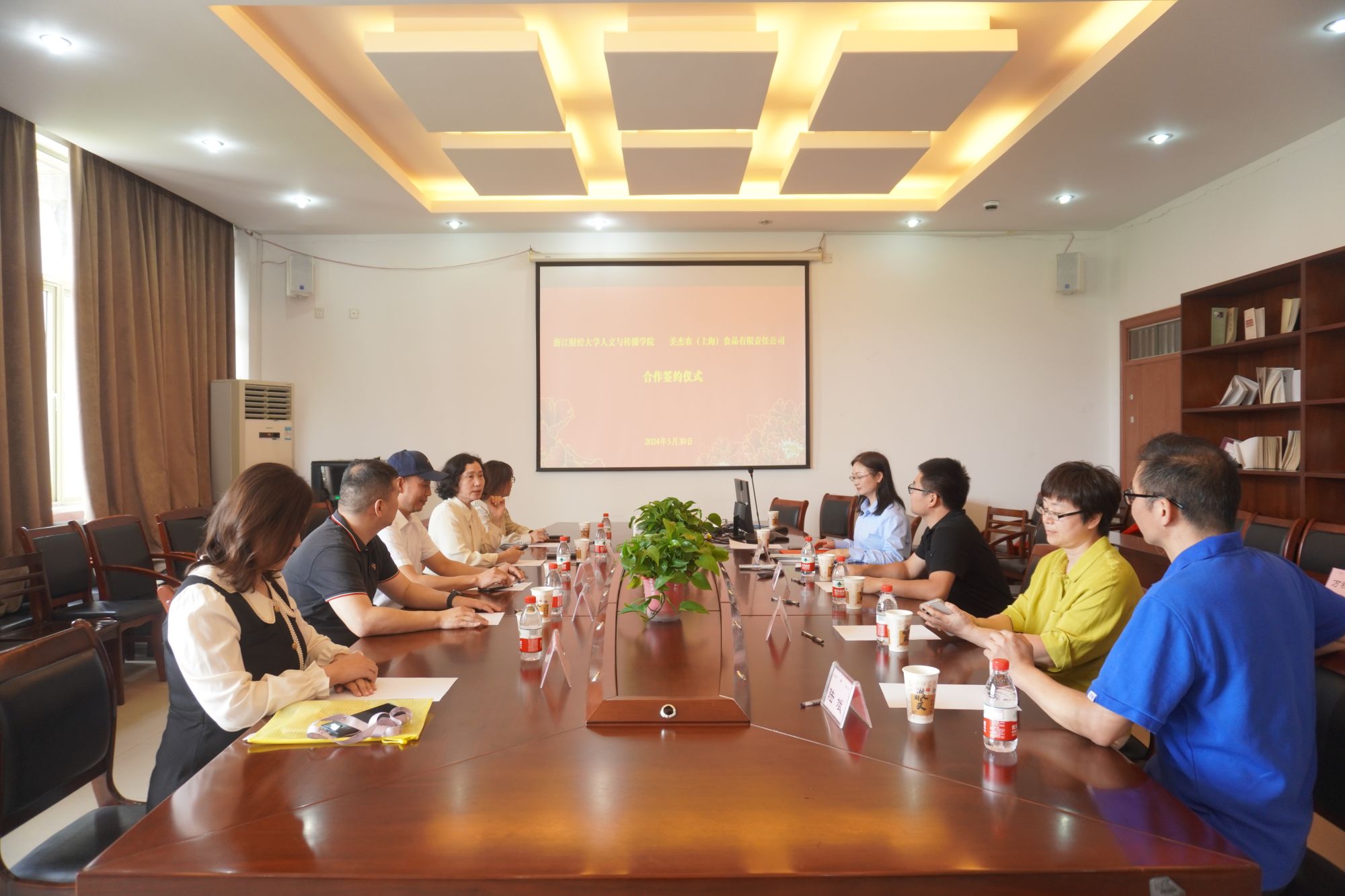 党委书记罗金艳、副院长林香娥、副院长毋丹、校友办主任吴玻、美杰农(上海)食品有限责任公司董事长肖和成,以及学院教师和部门负责人等共同出席签约仪式。