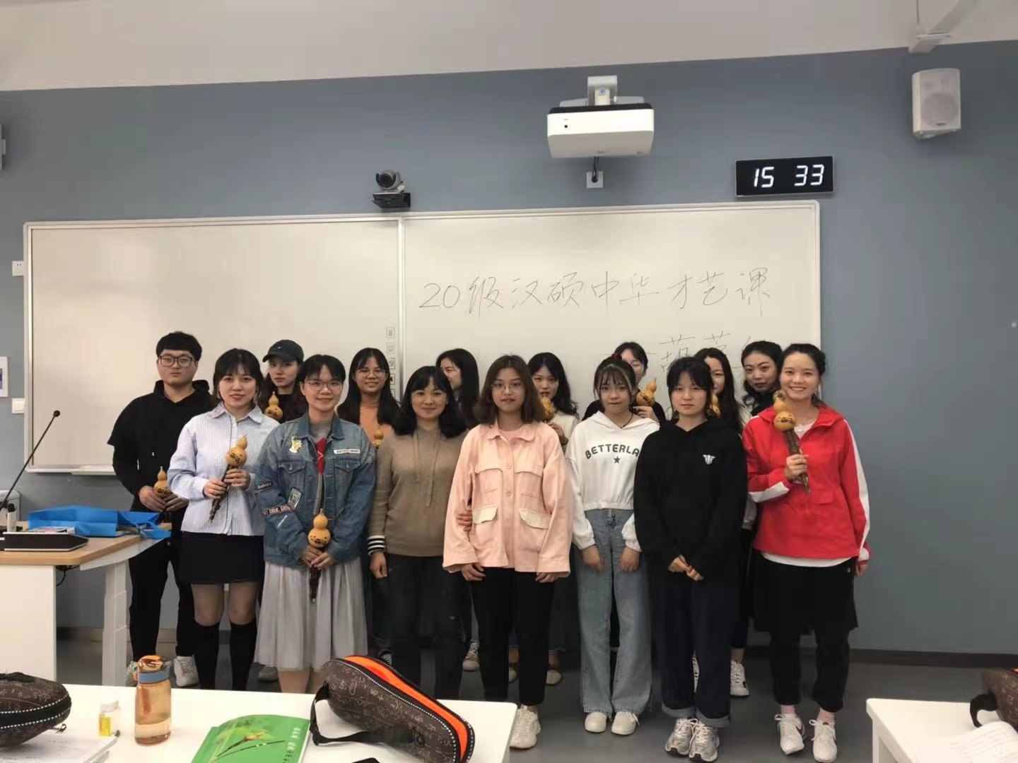 于11月27日下午在A215教室开展中华才艺之葫芦丝第二次专题讲座。张梦平老师应邀主讲,付伊老师主持,全体20级汉语国际教育硕士研究生参加了本次讲座。