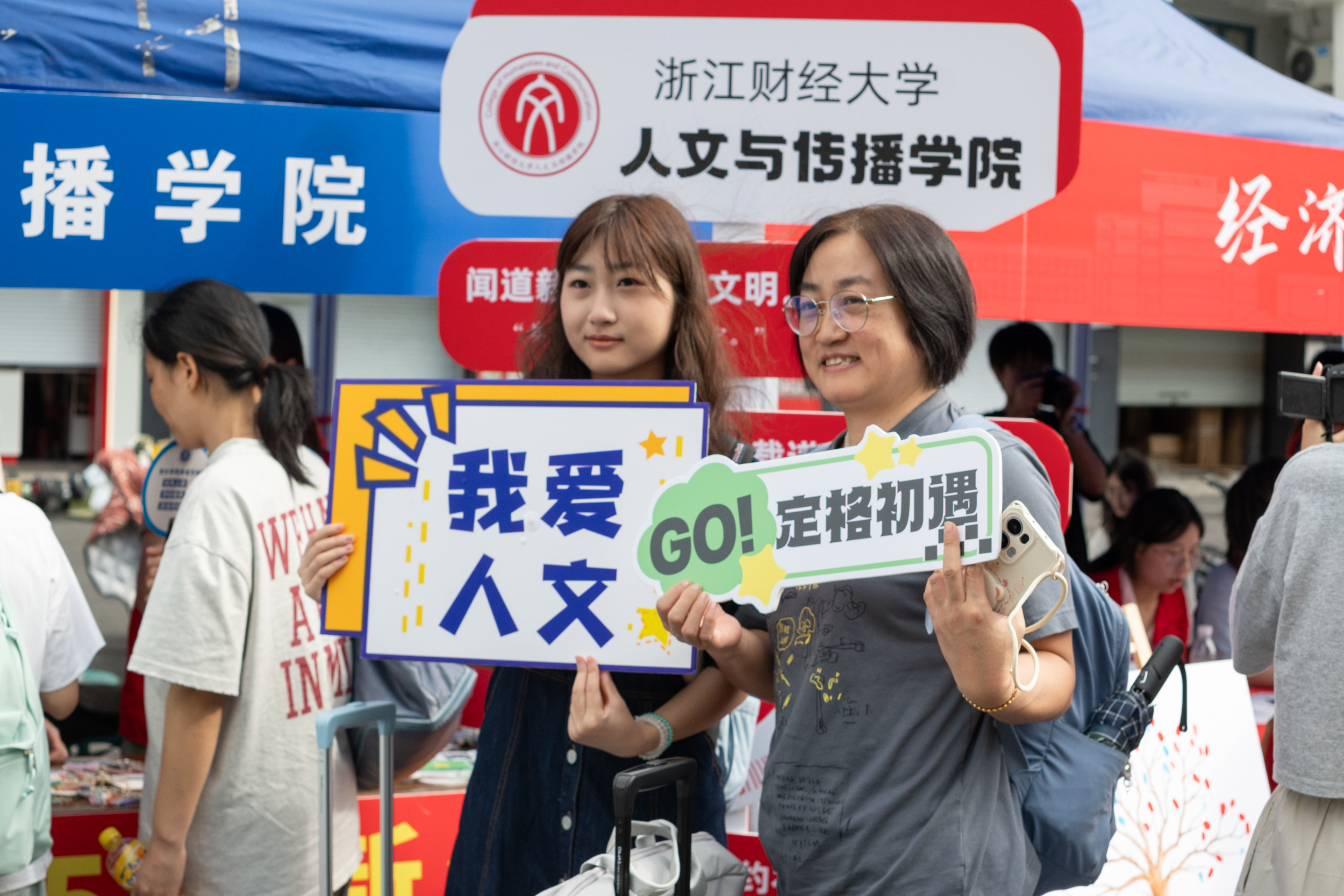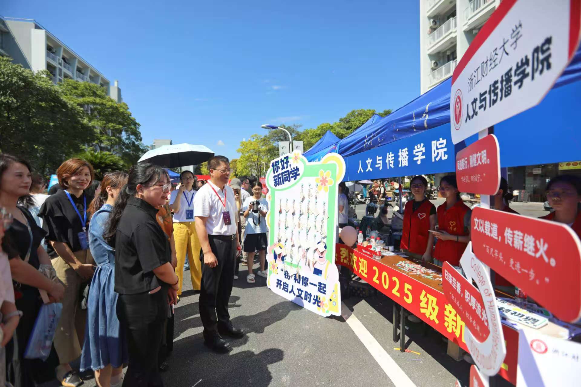 的迎新点位早已准备就绪。校党委书记、校长魏江,校党委副书记徐晓东一行专程来到漫画人