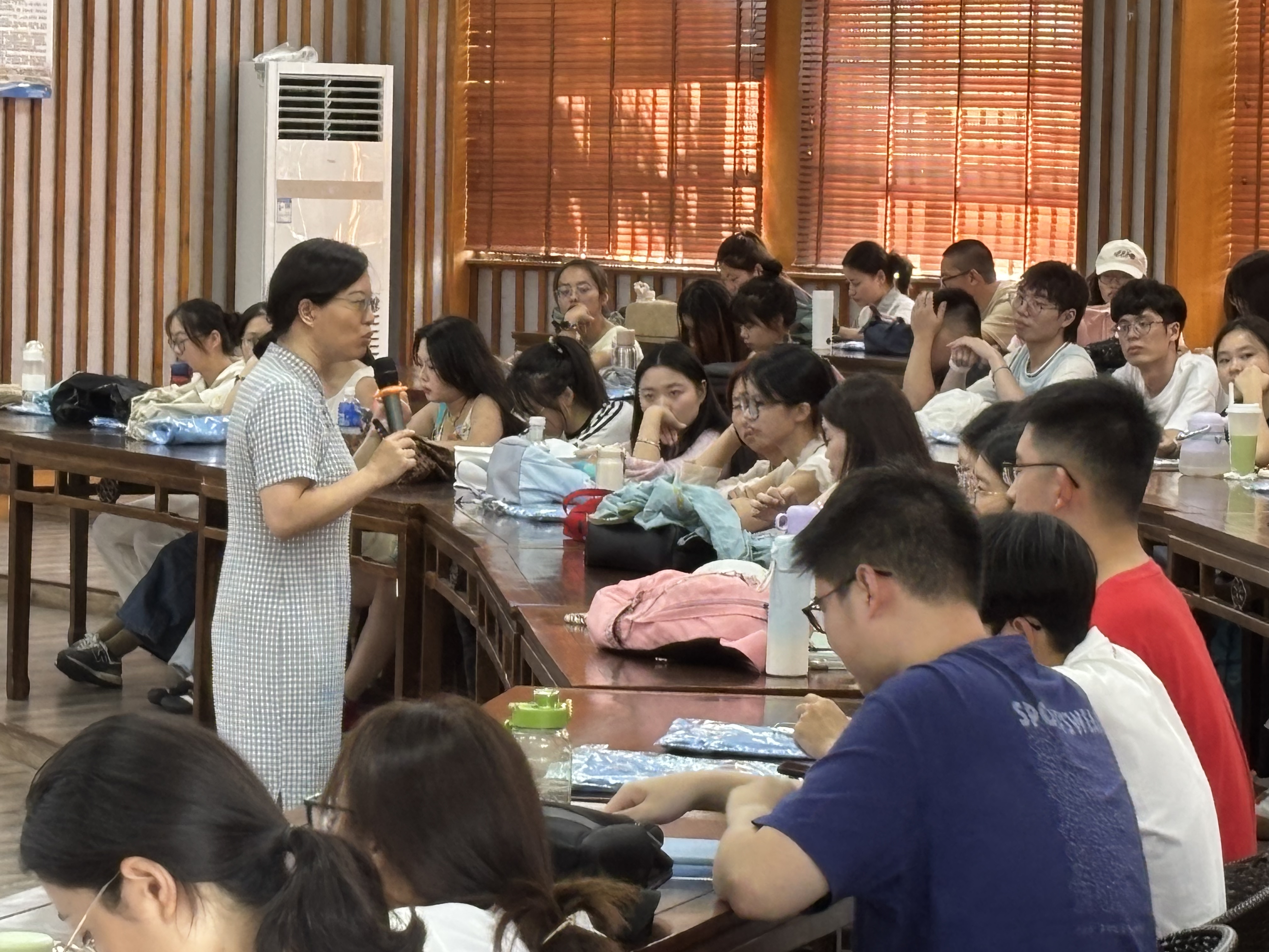 2025级硕士研究生齐聚问津书院,共同聆听了由学院党委副书记袁慧兰主讲的新生“书记第一课”与心理健康教育中心李晓娟主任带来的心理培训讲座。