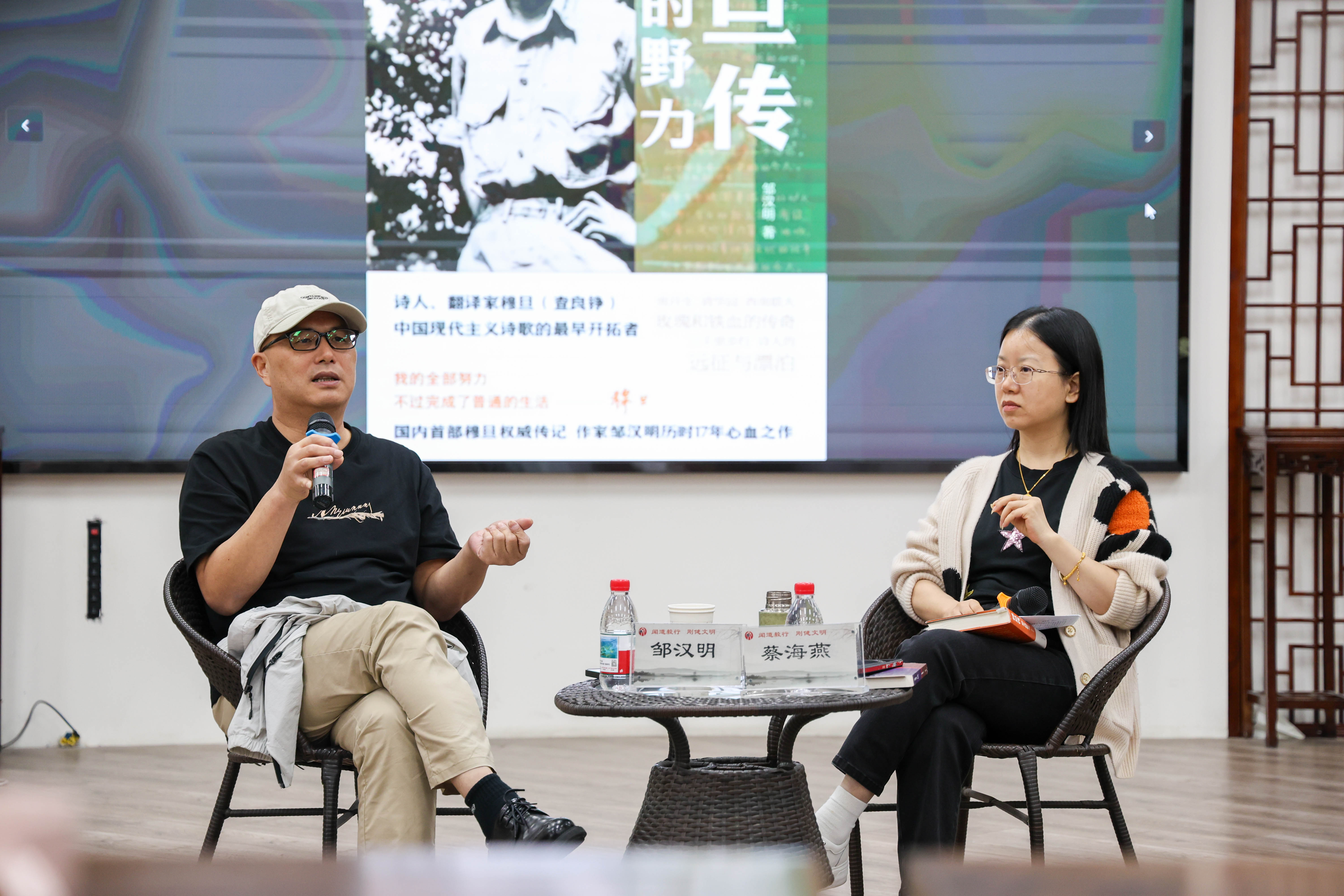活动伊始,袁慧兰老师向在场师生介绍了对谈嘉宾及其著作。诗人、评论家邹汉明先生,长期致力于诗歌、散文、传记及文学批评创作,其新著《穆旦传:新生的野力》于2025年2月由译林出版社出版。该书通过大量史料搜集与人物访谈,力图还原一个真实而丰富的穆旦。蔡海燕老师则是一位深耕欧美文学研究的青年学者,科研成果丰硕,是奥登研究的专家,出版多部有关奥登研究的著作。且于2024年获得教育部高等学校科学研究优秀成果青年奖。本次悦读会以对谈形式,引领听众走进穆旦所处的激荡年代。
