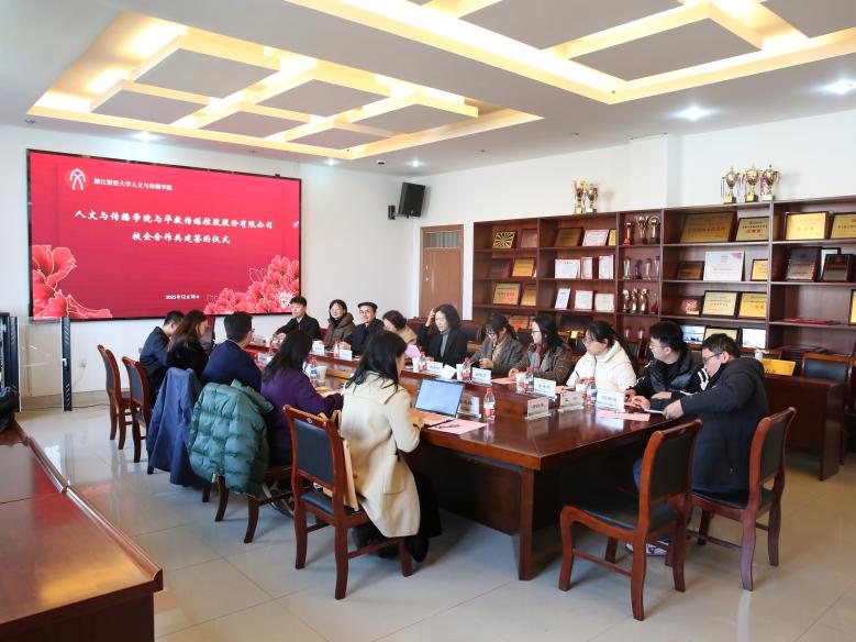 —华数传媒控股股份有限公司合作协议签约仪式在学院楼404会议室举行。华数传媒党委委员、副总裁许锐,大众市场支撑中心副总监吴梦楠,华数文化公司副总经理王桢臻,党委办公室主任助理、学院2015届校友宋庚桦,组织人事部党建工作分部经理吴玉萍;学院党委书记罗金艳、副院长林香娥、党委副书记袁慧兰,中文系铁三角项目主任姚晓萍、广告系副主任董建华、网新系副主任王彬等出席仪式。