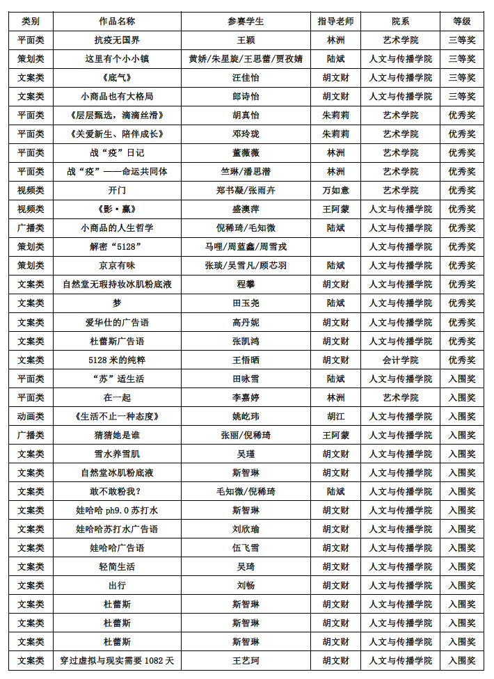 共获得三等奖4项,优秀奖14项,入围奖16项。