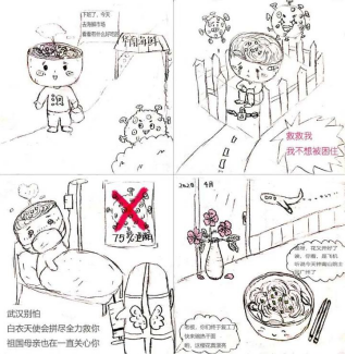 教师胡江在专业教学中,带领学生开展“疫情”系列漫画创作活动,带动广大学生积极创作,发挥创意,表达大学生在疫情下的所思所想,通过生动的形象和有趣的创意,为返校复学的大学生们传递防疫知识与抗疫精神。目前,已有三十多幅优秀漫画被展出,部分作品已被《人民日报》漫画增刊选录。