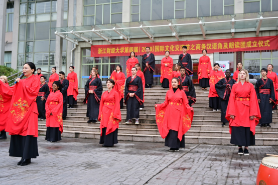 和国际学院在学涯湖畔举办浙江财经大学第四届(2019)国际文化交流节之商务汉语角及朗读团成立仪式。漫画人