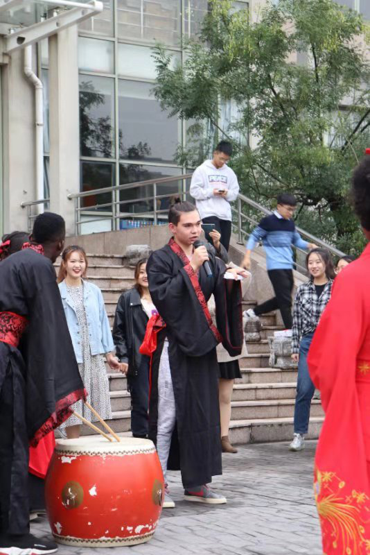 朗读团与留学生共同朗诵的《诗经·木瓜》,把人的思绪带入了中华传统文化无垠的长河里。百转千回、意蕴深远。在击鼓明志环节中,一声声清脆有力的鼓响寄托了老师们对学子们殷切的期盼,也饱含着学子们励志向学奋发前行的学习热情。