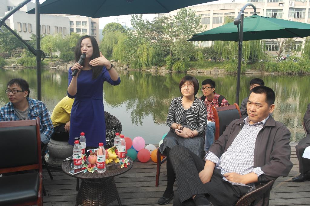 本次文学活动以沙龙形式,在美丽的学涯湖畔举行,师生共坐湖边,露天而谈,整个过程轻松而富于学术气息。沙龙由人文学院中文系主任吴智斌老师主持,人文学院汤燕君老师主讲。人文学院院长何华珍老师首先致辞。在习习清风中,大家开始倾听汤老师的讲座。
