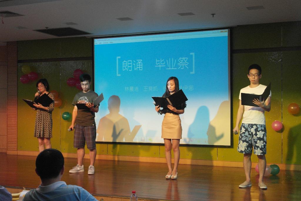 相聚的时光总是过得飞快,欢送会也渐渐进入了尾声。09文学的学子们用《老男孩》和《青春祭》向整个大学时代告别;用离别前的发言追忆、感恩这过去的四年时光,向青春致以了临别的敬意。