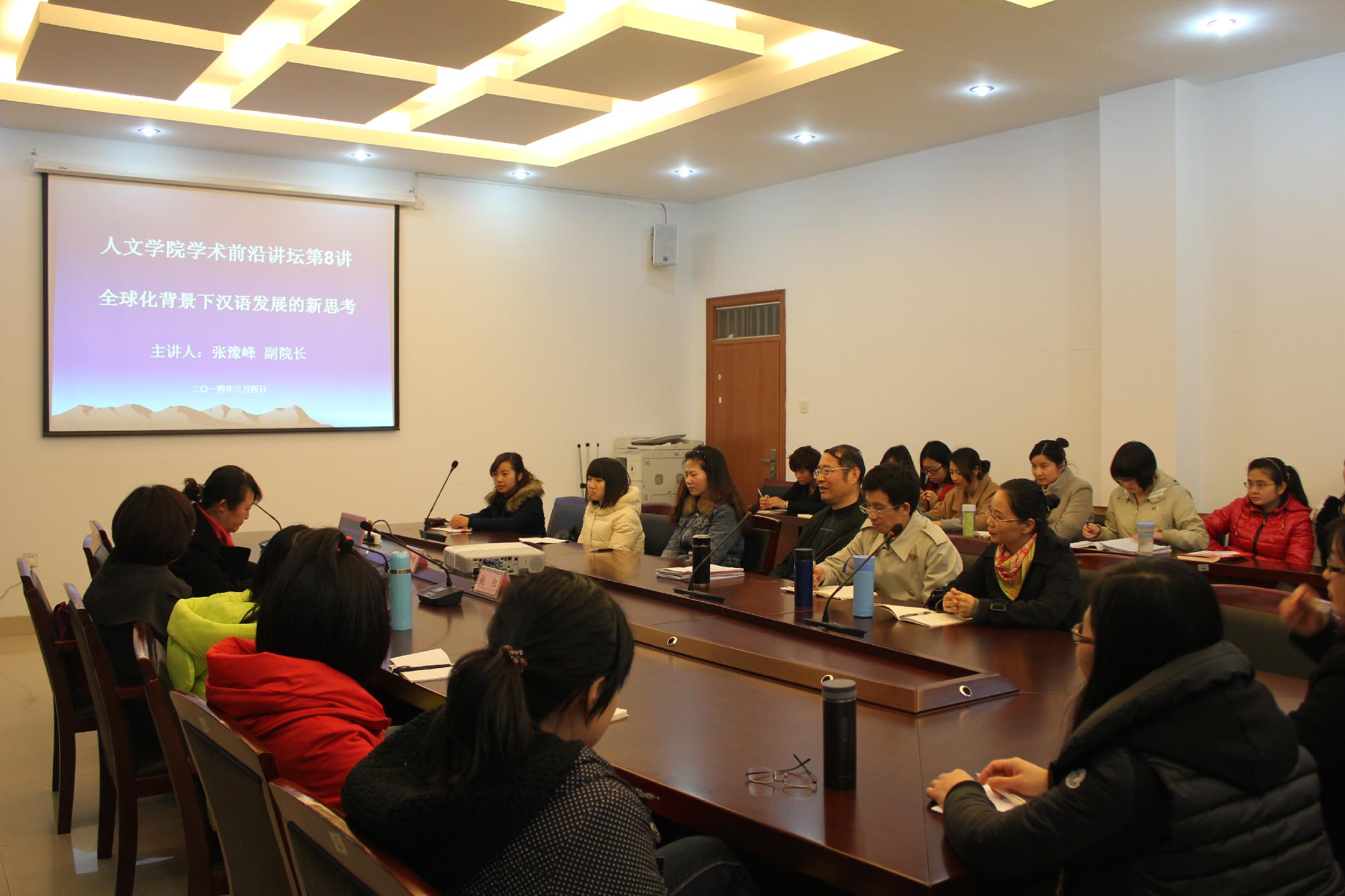 讲学,为研究生和本科生作了一场题为《全球化背景下汉语发展的新思考》讲座。人文学院副院长姚红、国际汉语系系主付伊等相关专业的师生聆听了此次讲座。