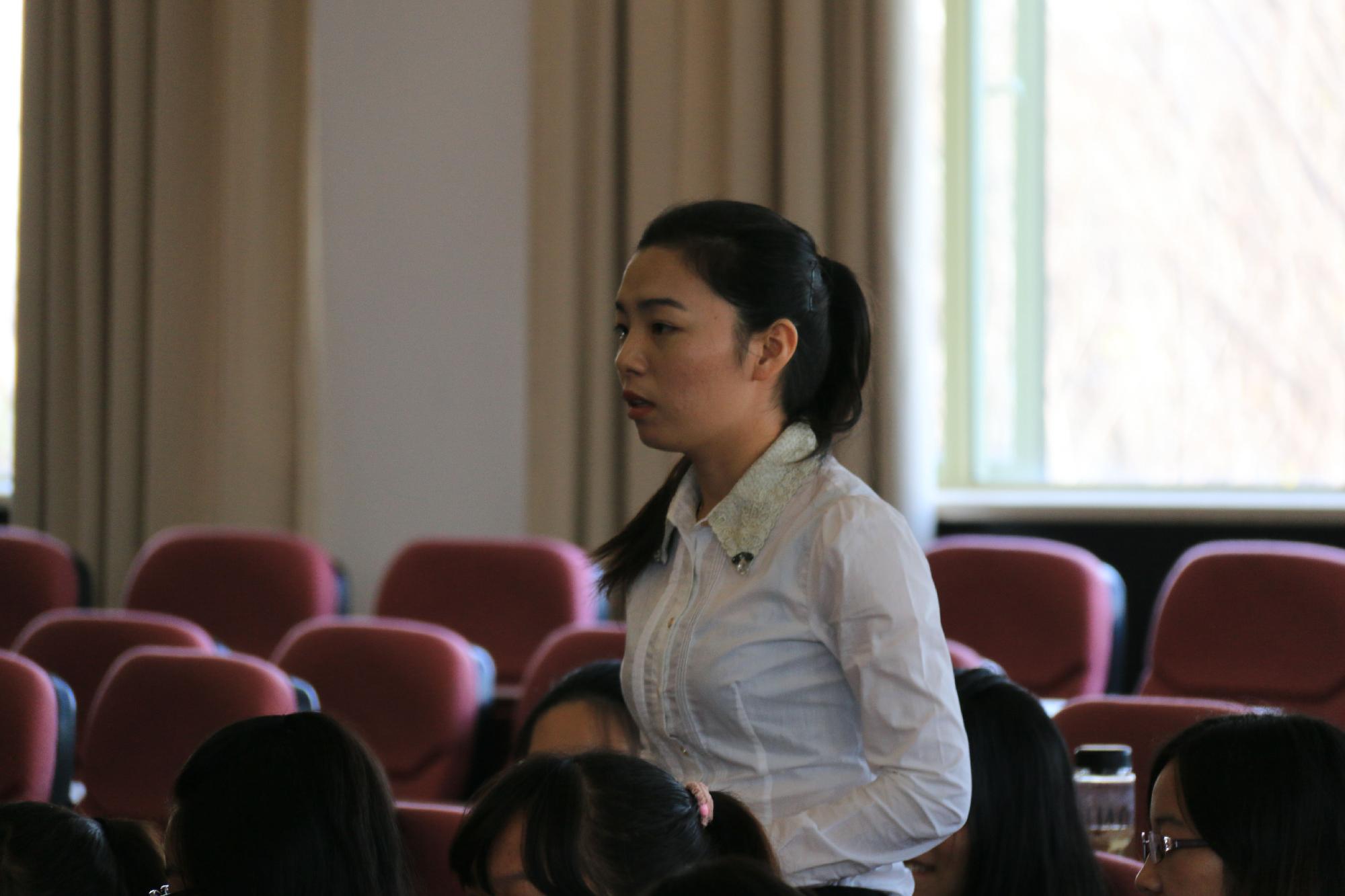 文华校区设立了一个教学点,自夏天开始招生,现已有100多名留学生。接下来,上海早安汉语杨凤华介绍了公司情况,她提到早安汉语有多个职位在向外开放,并鼓励同学们多去应聘。两家单位均以开展针对外汉语教学为主要工作内容,共提供10-15个与对外汉语教学相关的岗位。在两位嘉宾介绍完各自公司的情况后,副书记吴玻老师做了动员讲话,首先他向两家单位对漫画人