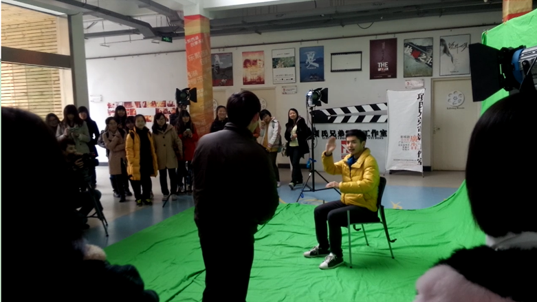 在时光公司工作人员的陪同下,同学们参观了公司的办公场所和凤凰创意园区设施。走进公司,同学们在一楼展示墙上看到即将上映的电视剧《蓬莱八仙》特效剪辑的片段,二楼工作区是三维部,几十台苹果电脑紧密排开,工作人员正在紧张的创作中,一片繁忙景象,三楼是会议区和后期部,吸引同学们的是剪辑和调色环节。在园区的摄影棚,同学们观摩了绿幕使用,2位同学现场充当模特进行素材拍摄,然后进行抠像、合成,在工作人员恶搞的演示下,成像的效果让大家笑得前仰后合,同学们见识到了特效的魅力。参观结束后,同学们和工作人员进行了座谈交流,进一步了解了影视后期特效的专业属性和数字媒体艺术的应用前景。