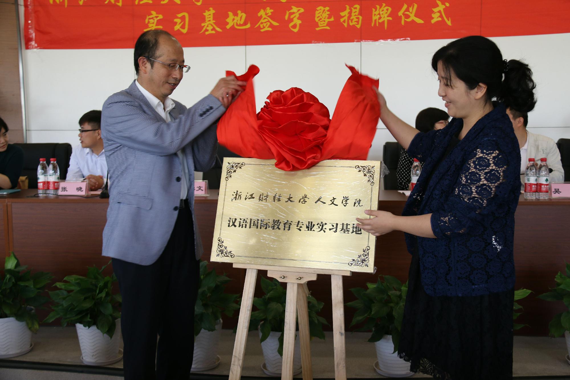 10月26日上午9时30分,在人文学院楼112多媒体会议室隆重举行了浙江财经大学人文学院汉语国际教育专业实习基地签字暨揭牌仪式。浙江财经大学人文学院党总支副书记(主持工作)高燕,副院长姚红,党总支副书记吴玻,院长助理杨建忠,国际汉语系主任铁徽出席仪式。浙江财经大学国际学院副院长(主持工作)邱学文,上海早安汉语暨上海盛兴文化传播有限责任公司董事长杨凤华应邀出席此次活动。