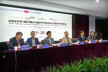 10月31日-11月1日,2015年度第六届中国语言经济学论坛在浙江财经大学隆重举行。浙江财经大学副校长黄建新教授致欢迎辞,人文学院院长何华珍教授主持开幕式。