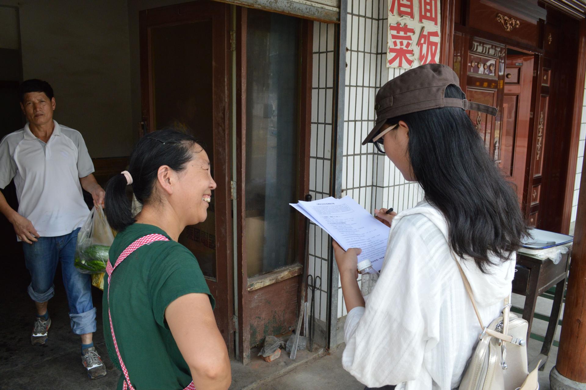 下午,暑期社会实践服务团组成小分队,深入到农民家中进行走访调研,通过调查问卷,收集村民对文化礼堂建设的看法与建议。
