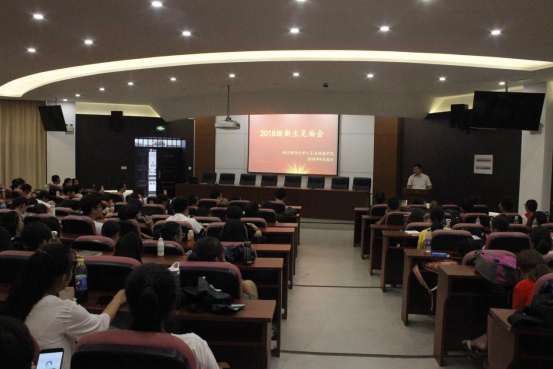 党委副书记吴玻,中文系吴智斌、姚晓萍,汉语国际教育系孙德平、刘亚辉、詹春花,广告系王阿蒙、谢点,数字媒体与艺术系王文奇、胡江老师以及2018级全体新生参加了本次见面会。会议由吴玻主持。