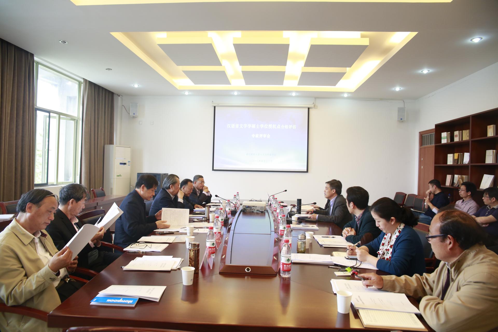 汉语言文字学硕士学位授权点合格评估专家评审会在7号楼404会议室召开。此次会议邀请了河北大学杨宝忠教授、北京师范大学李国英教授、浙江工商大学蒋承勇教授、浙江工业大学肖瑞峰教授、浙江师范大学张先亮教授、浙江科技学院王建华教授等知名专家进行评审指导。校长钟晓敏、研究生院院长张雷宝出席会议并讲话。学院党政领导和中文学科相关教师参加了会议。