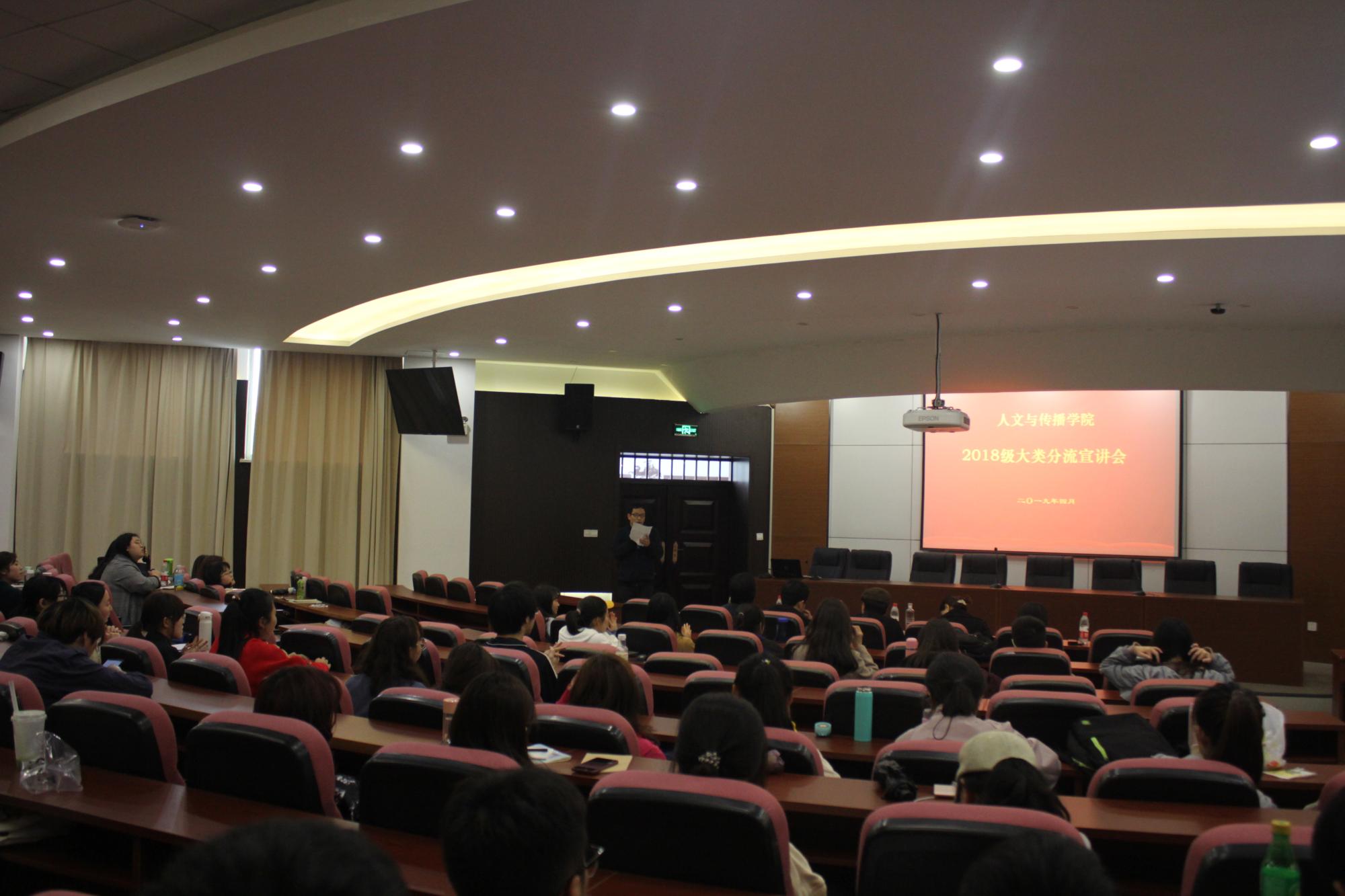 2018级学生大类分流宣讲会在7号楼112报告厅举行。此次会议由章立峰老师主持,副院长姚红、副书记吴玻、各系老师代表及2018级全体学生参加了此次会议。