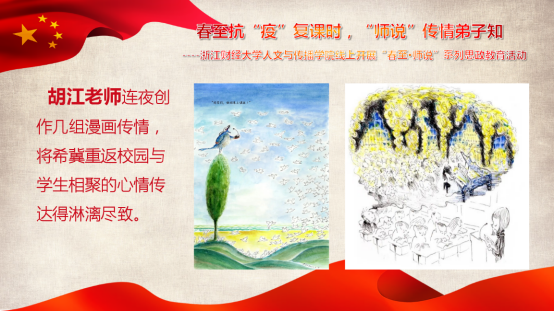 党委充分发挥各党支部专业特长和战斗堡垒作用,号召师生党员积极投身抗“疫”斗争,先后涌现出吴智斌、姚晓萍、杨建忠、何冬学、陈金柱等优秀师生党员典型。同时,各党支部利用专业特长,开展了富有人文特色的抗“疫”活动和教育实践,传播了正能量,提升了师生党性修养,为疫情防控作出积极贡献,相关事迹先后受到高校思政网、新浪网、浙江新闻网、浙青网、浙江财经大学官方媒体的报道,取得了良好的社会效应和教育效应。