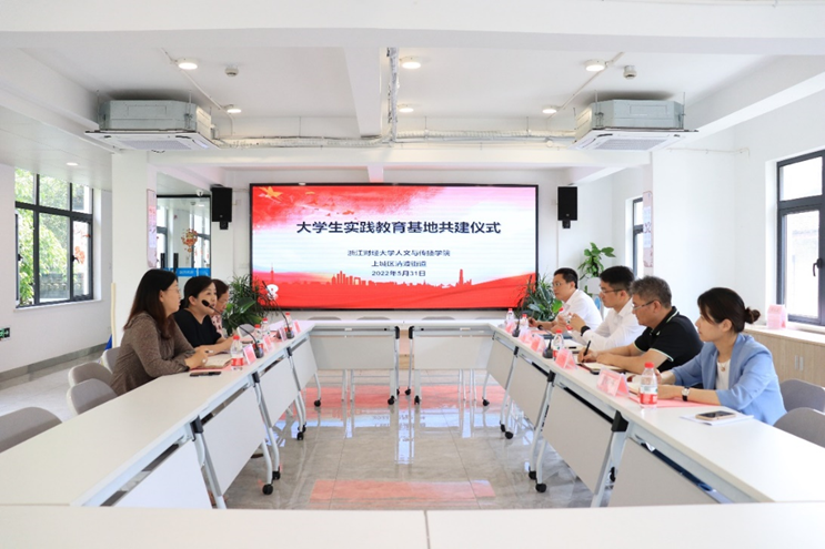 党委书记高燕、副书记袁慧兰、中文系系主任姚晓萍和辅导员一行赴杭州上城区清波街道访问挂牌,清波街道党工委书记蒋晓斌、党工委委员、副主任戚晓峰、党建办主任柴淦、区域发展办贾晔唯、人社站金臻出席了共建仪式。