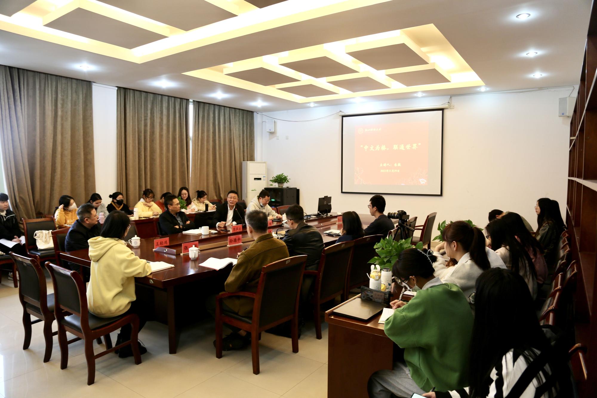 做了题为《中文为桥,联通世界》的专题讲座,讲座由院长周保欣主持,漫画人