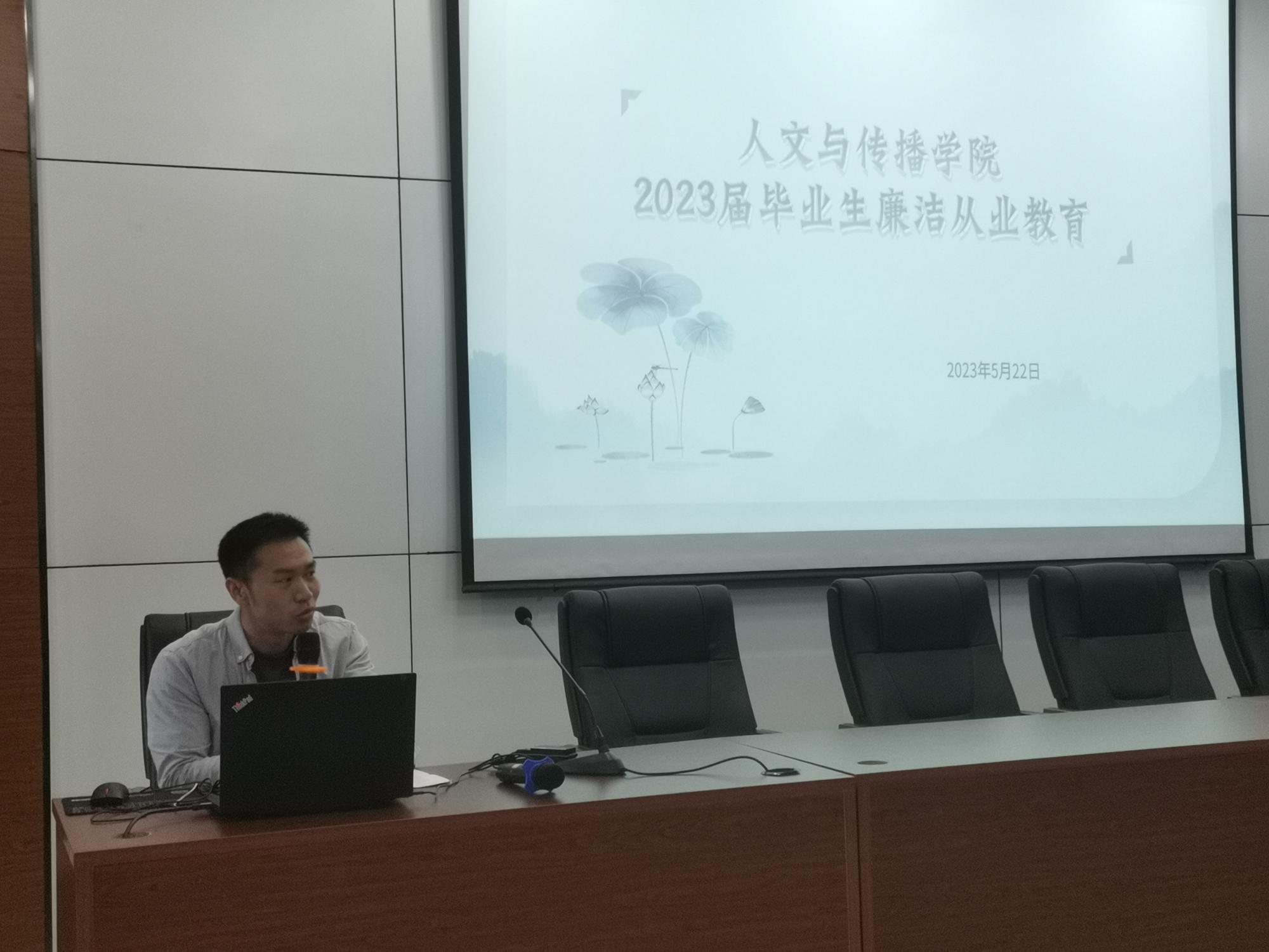 举办“永葆廉洁心,走好人生路”专题廉洁从业教育会议,学院2019级毕业班辅导员万秋萌作主题发言,2023届全体本科毕业生参加大会。