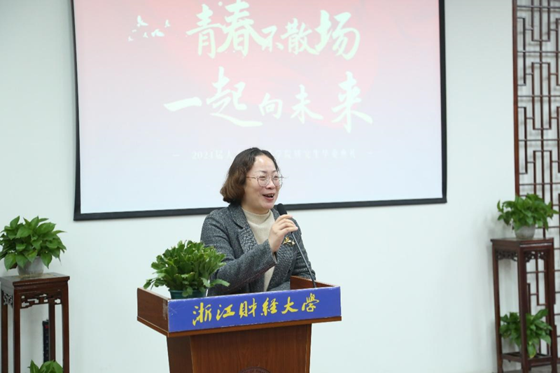 罗书记首先代表学院热烈祝贺全体毕业生圆满完成学业,踏上人生新征程。勉励毕业生牢记浙财校训,做与时代同行的人,自觉肩负起当代青年的社会使命和责任,把个人梦想汇入到时代发展的洪流中,立足专业与学科,讲好中国故事,传播好中国声音,让奋斗的青春与家国的情怀共振。