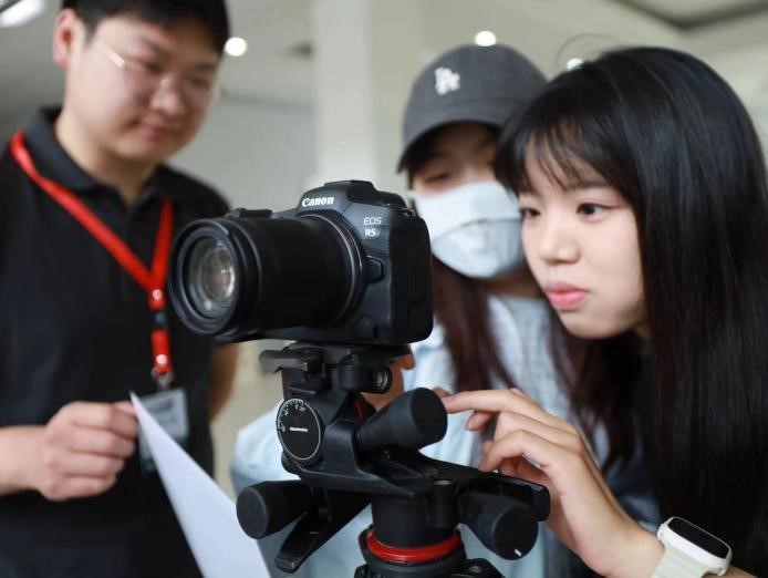 贵州省广告协会秘书长张笛做大会总结,他认为,这场学术研讨会暨人才培养论坛,让来自全国各地的与会者、高校教师亲身感受到了杭州借助数字化和人工智能发展新质生产力,产业、教育、科研互为融合,全城发力全面提速数字经济的“杭州活力”。他希望浙江财经大学能够继续依托“数智杭州”的产业优势,在数字经济、融媒体、智能传播、新电商等领域发挥学术研究、教学实践的创新引领优势。(下图为会场外体验区同学们认真实操高精数字影像设备。)