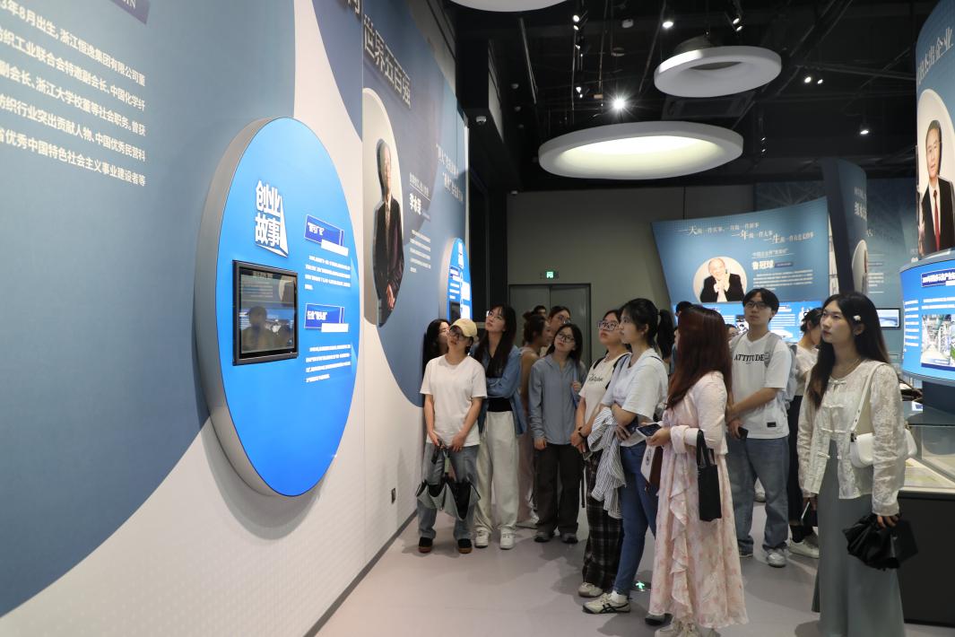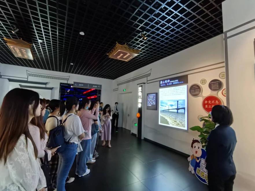 袁慧兰一行人在讲解员的引导下参观了萧山智慧·城市馆和民营经济展示馆。通过全息投影、AI人工智能、AR增强现实、沉浸式AI互动体验等现代声光电先进技术,展现了萧山的城市发展历程、文化底蕴和城市智慧建设成果,也展示了300余家萧山民企和民营企业家的奋斗故事。通过参观,师生们对于萧山总体的人文经济和社会发展等各方面都有了更加深入的了解。