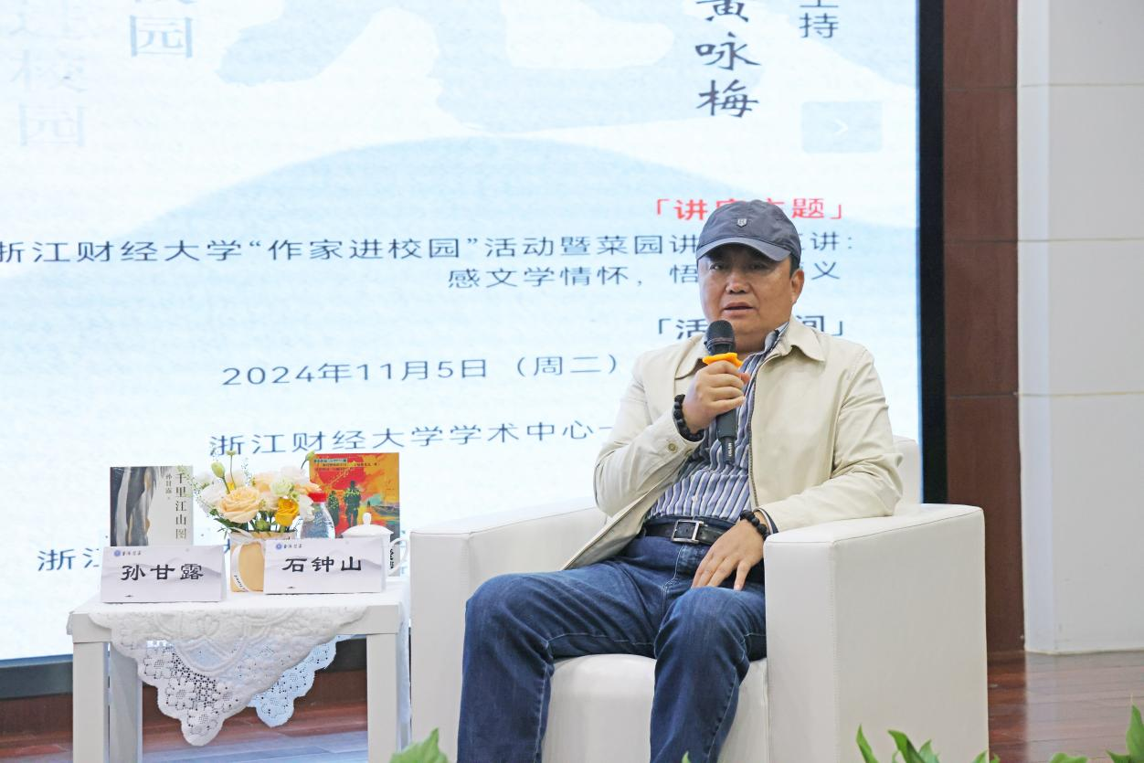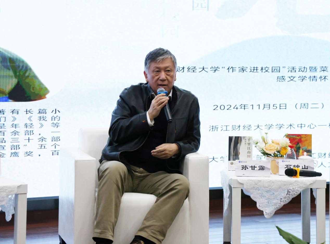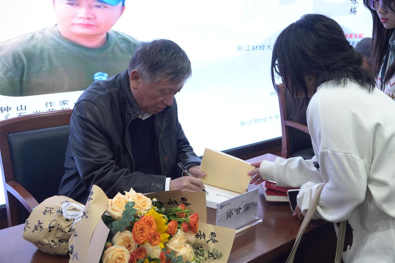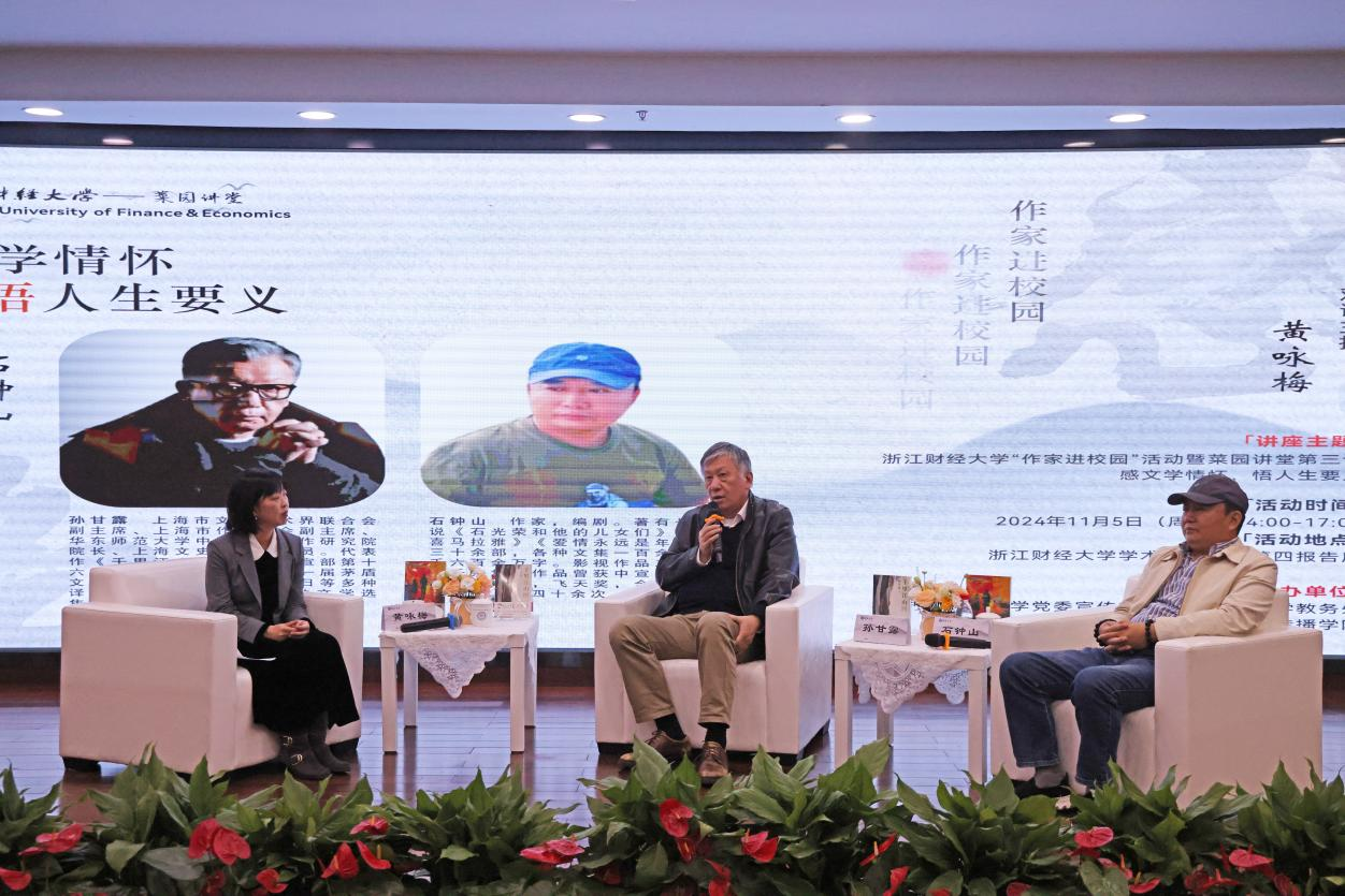 程爽副书记在致辞中表示,高校是人才培养的重要基地,推进社会主义文化强国建设是高校义不容辞的使命。当前,学校正在大力实施“新财经战略”,致力于培养MAQ型“完全之人物”的“浙财金生”,“作家进校园”活动是拓宽学生文化视野、提高文学素养、满足青年学子对高品质文学需求的重要举措。他表示,经典的文学作品不受到时间的约束,会在一代代人心中绽放光彩。两位作家的文字充满着生命的力量,作品中体现的坚毅、勇敢、真诚等品格,正是当前数字经济高速发展的时代迫切需要的精神特质,希望此次活动,能进一步丰富学校的人才培养模式,促进校园文化建设,以文培元,滋养心灵,为大家提供更加丰富的精神养分,促进学生全面发展。
