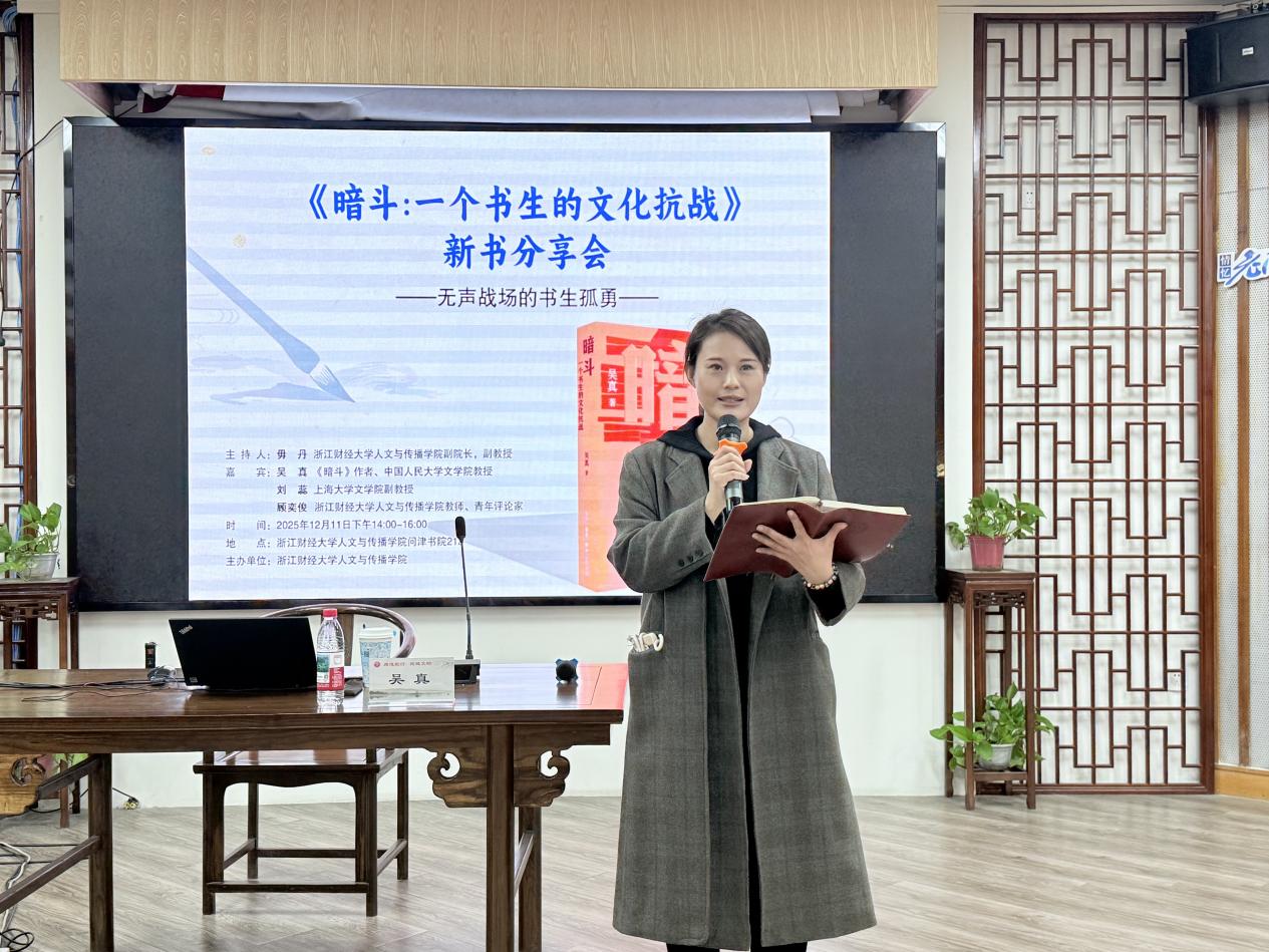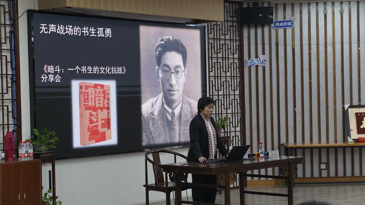 活动伊始,吴真教授分享了这部作品的诞生历程。从2009年一个书页间萌发的念头,到2025年最终成书,《暗斗:一个书生的文化抗战》的创作横跨了整整十六年。吴真教授指出,这本书的写作不仅是一次学术探索,更是一场与历史、与先辈的深度对话,旨在揭示:在烽火连天的岁月里,书籍的命运、文人的抉择与民族文脉存续之间深刻而紧密的关联。