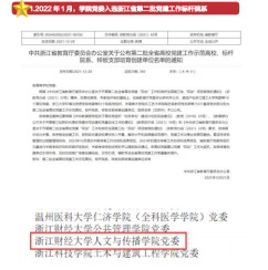 党委坚持围绕中心、服务大局,充分发挥党组织的政治核心和战斗堡垒作用,学院党委认真贯彻落实中央和省委关于加强高校党建工作的部署要求,大力推行“党建+”工作模式,努力在“+什么、怎么+、如何+”上做文章,以“党建+教育教学、党建+服务学生、党建+服务管理、党建+专业建设”等为载体,将党建融入学院事业发展工作的方方面面,打造了党建工作新亮点。从2016年启动首轮党建特色品牌创建工作,已累计40余项特色党建项目获得立项和结项。党员师生充分发挥在学科专业建设、人才培养、科学研究等中心工作的政治核心作用和引领示范作用,充分发挥了品牌的示范、引导、激励和带动效应。学院3个教工支部、5个学生支部逐渐形成颇具特色的品牌,有力发挥了党支部战斗堡垒作用和党员先锋模范作用。近5年来,先后5个基层支部案例获得浙江财经大学支部建设创新奖和优秀奖,教工第一支部入选全国党建工作样板支部、浙江省党建工作样板支部和全省高校首批“双带头人”教师党支部书记工作室, 2021年12月,学院党委入选为第二批全省党建工作标杆院系培育创建单位。