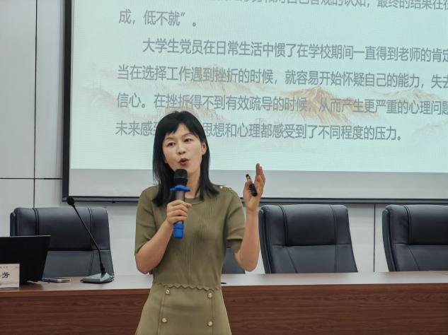 陈小芳老师以“大学生党员的心理调适”为主题,带领学员们学习如何缓解紧张和焦虑情绪,有效应对学习和工作中的多重压力。陈小芳老师还指出要重视自身心理发展健康,不断提升心理素质,以更加健康、积极的心态面对学习和生活中的挑战,为服务同学、践行党员责任贡献自己的力量。