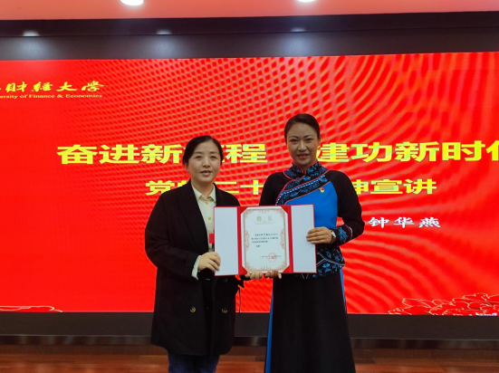 分党校校外特聘导师。学院党委书记高燕为钟华燕颁发聘书,并就党课授课、活动共建等进行深入交流。
