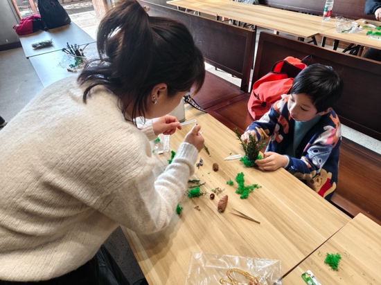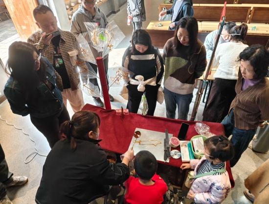 教职工们首先抵达建德大慈岩镇,大慈岩景区以“江南悬空寺”闻名,教职工们乘坐缆车上山,挑战悬空寺与滑道,俯瞰880米长谷溪流,千年银杏渐变金黄,惊险与美景并存。接着,教职工们来到千鹤书房体验画糖画和捡秋手工制作。在师傅们的指导下,大家尝试用铜勺作画,用落叶、松果等制作手工摆件,收获了满满的乐趣。