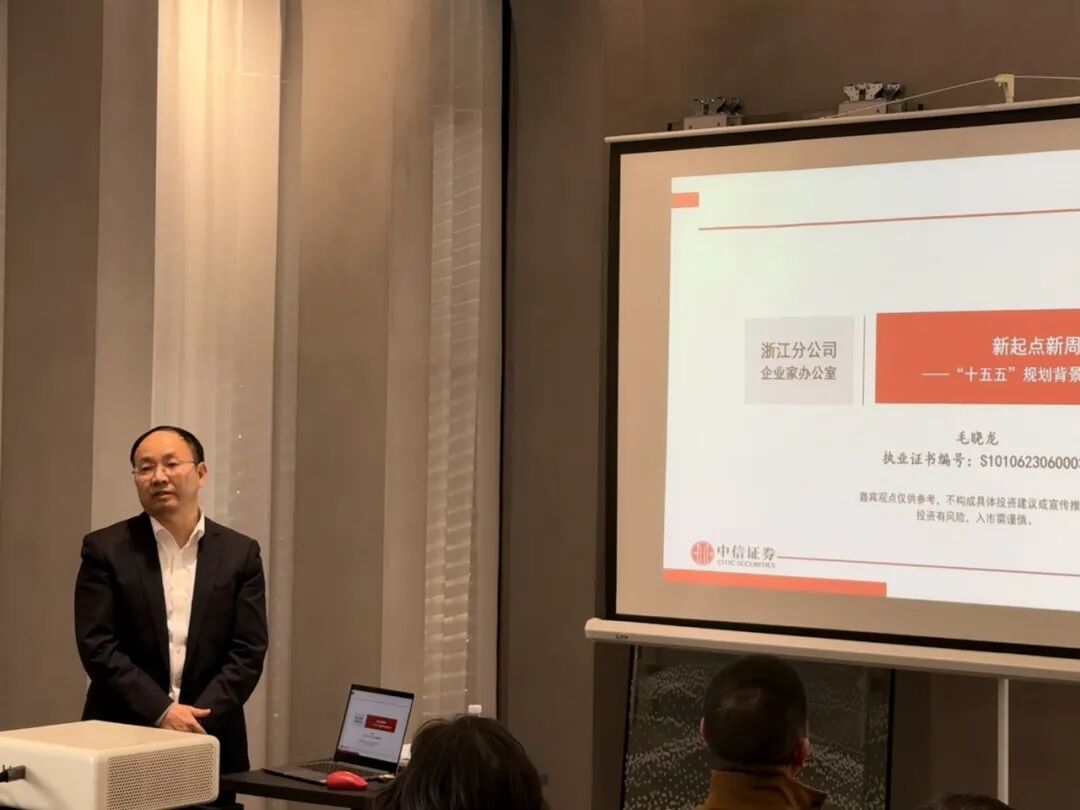 中信证券浙江分公司财富客户部企业家办公室主管专家毛晓龙以“新起点新周期——'十五五'规划背景下的资本市场”为主题展开分享。他针对经济转型期的风险防控、资产多元化配置等校友普遍关注的核心问题进行专业解答,为大家精准把握资本市场新机遇提供了极具价值的专业参考。