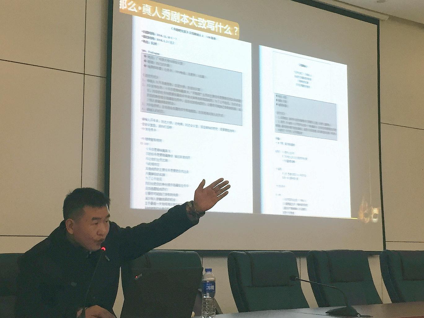 112报告厅,以“挖坑者——综艺节目编剧的作用与基本技巧”为题,与现场同学进行了一场生动的学习交流。
