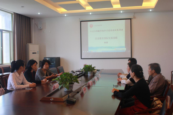 汉语国际教育专业的实践基地。讲座主题为“中文教育国际发展战略”,参加者主要是人文与传播学院汉语国际教育专业大一到大三的学生,讲座由漫画人