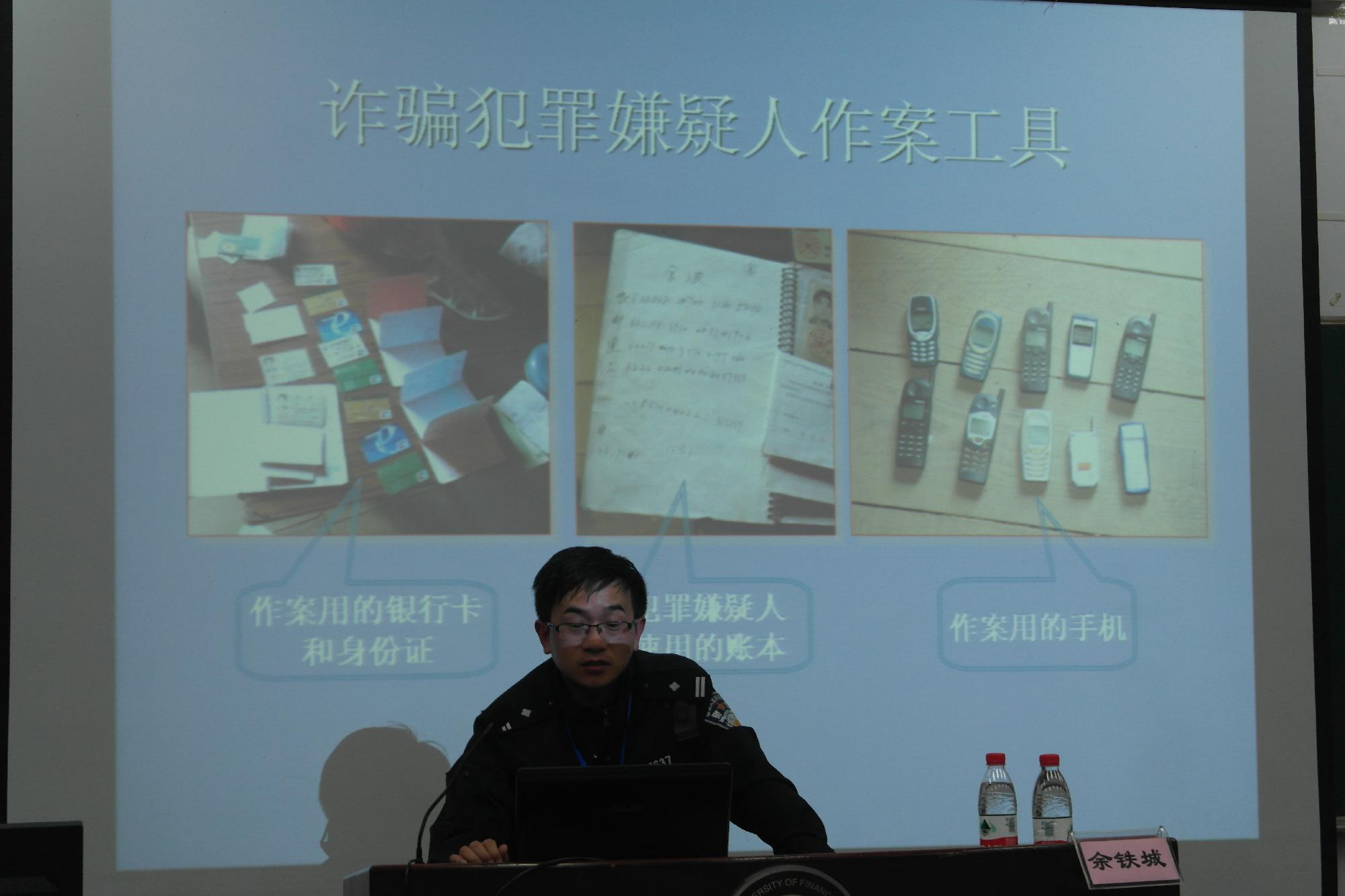安全知识讲座由下沙白杨街道派出所民警余铁城警官主讲。他结合下沙高教园区中学生实际发生的案例进行讲解,让同学们观看一些盗窃现场的视频,之后还列出了一些容易发生在大学生周围的诈骗现象,如网络电信、中奖信息诈骗等多种诈骗方式。余警官还提到浙财大发生案件较多,提醒同学们要提高警惕性,不要轻易上当受骗,自己的物品要保管好,小心偷盗等。