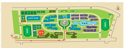 ②火车东站和城站火车站路线:建议乘地铁1号线(文泽路方向)到文泽路站下车, D出口出,步行至五号路二号大街口站(约150米),换乘370路公交到“下沙高教东区”站下车,步行至浙江财经大学学术中心(靠近南大门)(约300米)。从火车站坐出租车至学校约需90元。