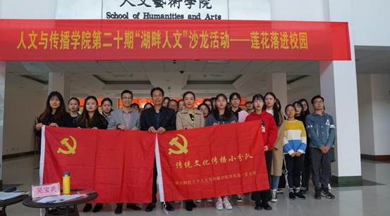 学生第一党支部在学院楼大厅举办越乡莲歌—曲艺鉴赏主题讲座,支部邀请中国曲艺家协会会员、浙江省上虞曲艺团团长、国家二级演员吴宝炎老师及其莲花落第五代传承人吴伟泉老师进行讲授,支部党员、积极分子积极参与。