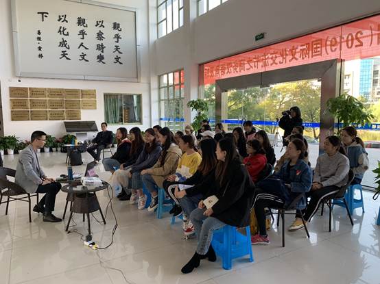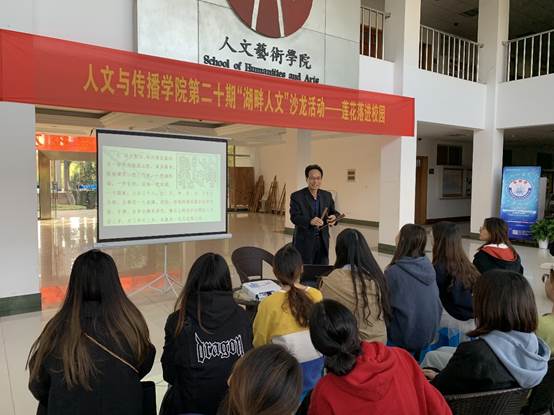 吴伟泉老师从戏曲与曲艺的差别入手,从同学们所学知识引申到曲艺,揭开曲艺神秘的面纱,介绍了曲艺的基础概念,教会同学们识别曲艺。吴宝炎老师讲述了自己与莲花落的故事,为大家介绍了莲花落的发展、创作以及表演技巧,更亲身示范让同学们感受莲花落的魅力,表演众多曲目如《翠姐姐回娘家》等,赢得同学们阵阵掌声,同学们纷纷表示受益匪浅。
