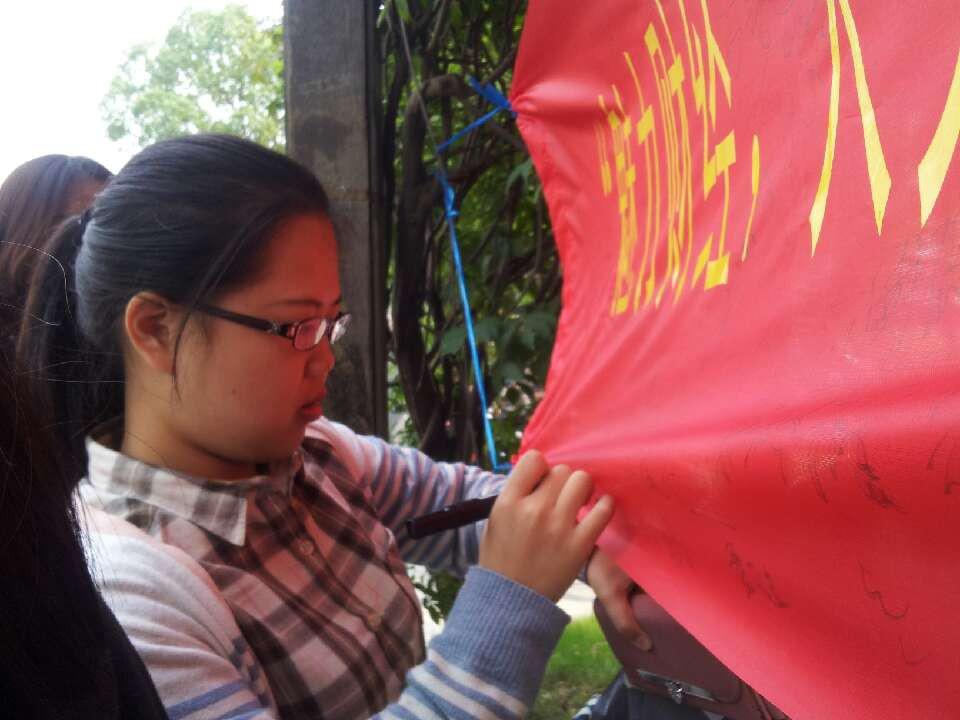 “签名送书签”的新颖活动方式吸引了许多经过的同学,大家纷纷聚到横幅前,用马克笔在横幅上留下了自己的名字,至下午一点半,三米长的横幅已被写满,本次活动圆满结束。